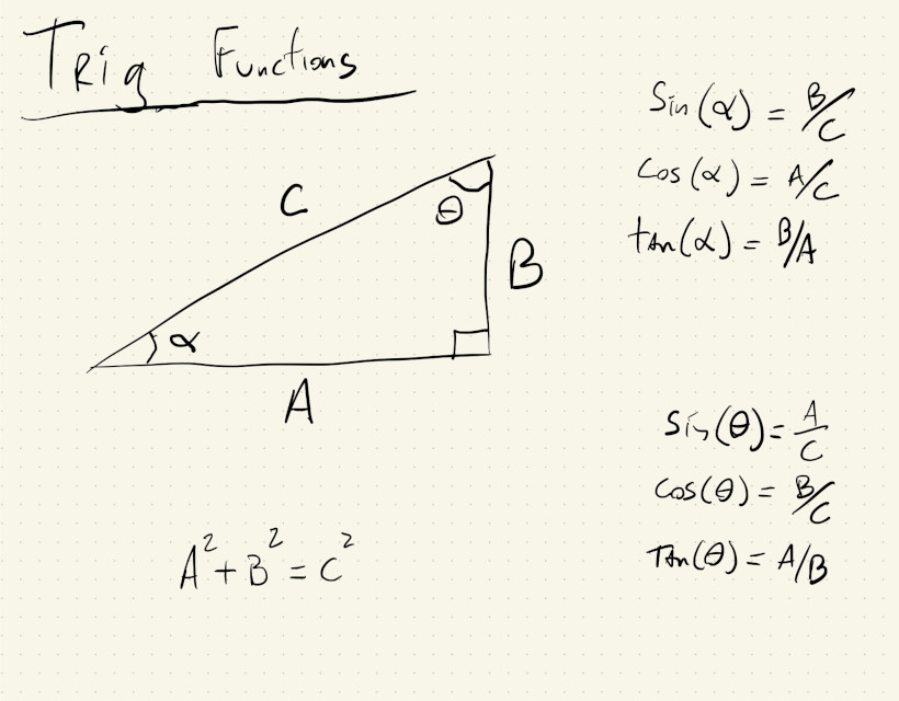 As a review: trigonometric functions are functions that, along with the Pythagorean theorem, define relations between the angles of a right triangle and the length of its sides: