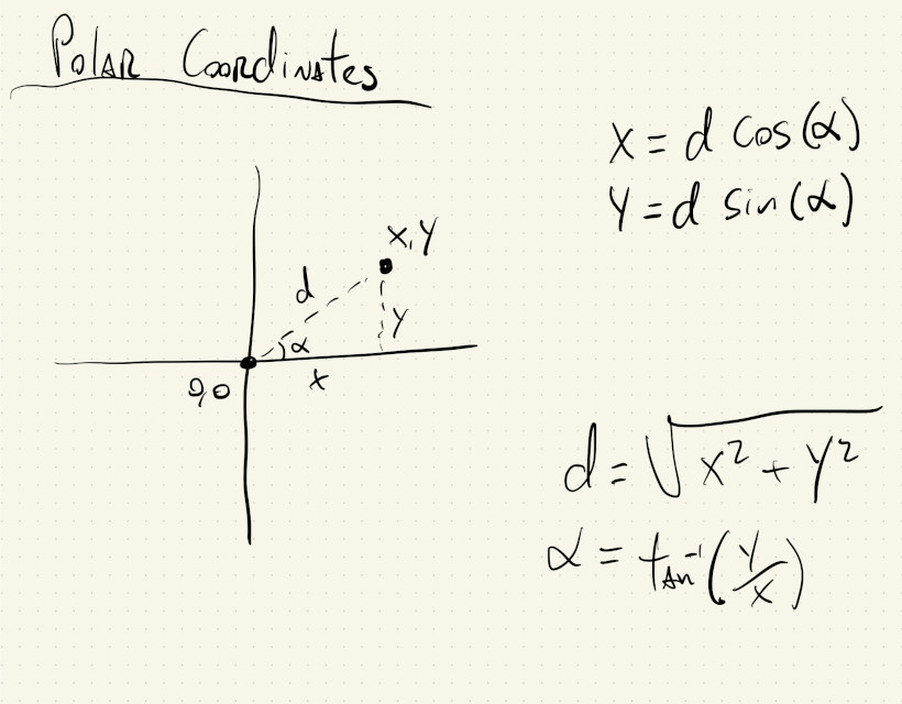 Polar coordinates are lots of fun, and can also be very useful when we need to calculate the distance or the angle between two points.